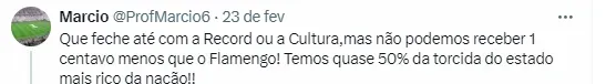No entanto, existe um cenário muito drástico. Neste caso, a Globo tiraria todo o montante destinado ao Corinthians, totalizando o incrível valor de R$ 280 milhões, representando assim 21% de toda a fatia.