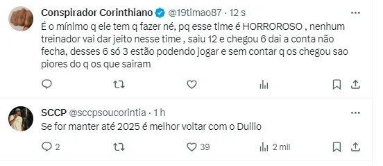É bem verdade que o presidente Augusto Melo não agrada gregos e troianos no Corinthians. Há uma divisão muito grande entre os torcedores. Enquanto existem aqueles que apreciam o que vem sendo feito, outros estão descontentes.
