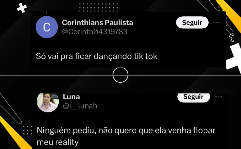 “Misericórdia. Pelo amor de Deus nãoooooooooo, além de ser insuportável dona da razão é uma péssima jogadora aff”, criticou uma internauta.