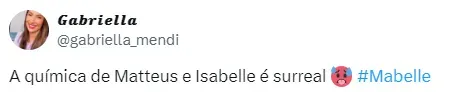 Na web, o casal ganhou o apoio dos internautas, com o ‘ship’ Mabelle chegando a ficar entre os assuntos mais comentados do X (antigo Twitter).
