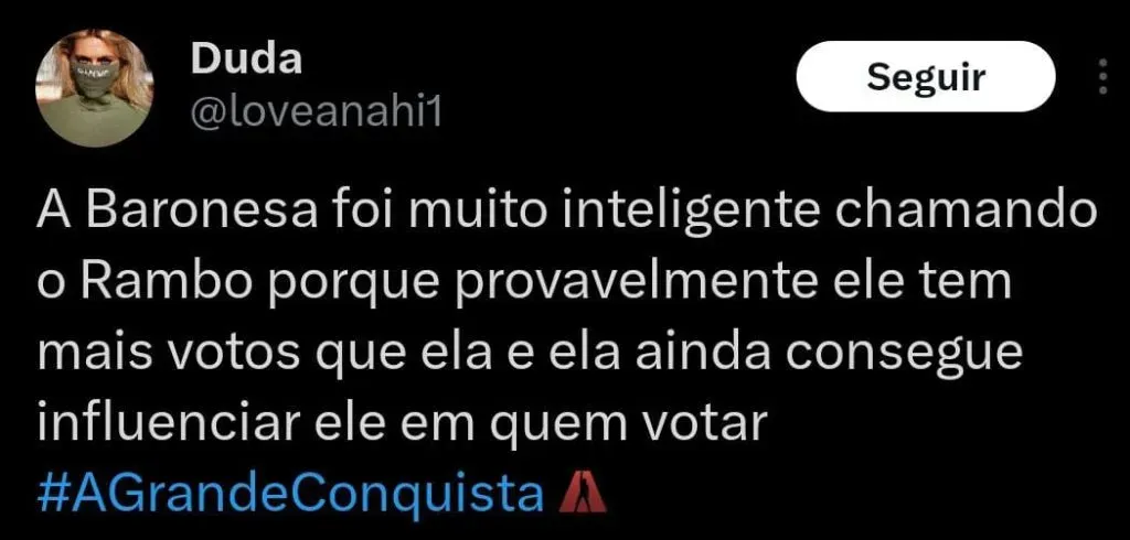 Logo após, Baronesa explicou o motivo de ter escolhido Will: “Tive que agir com meu coração e com estratégia do jogo, porque eu não tenho mesmo uma troca. E talvez lá a gente tenha”.