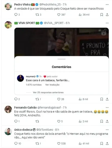 (SIC) “Fui bloqueado pelo craque Neto pq fiz um vídeo dizendo que o Everton Ribeiro não iria jogar no Corinthians, na época não havia possibilidade. Bom, ele vai pro Bahia”, iniciou o comunicador, que foi além: