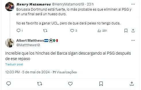 Na última quarta-feira (1), o time francês visitou o Borussia Dortmund, no Signal Iduna Park, jogo de ida da semifinal, e acabou derrotado pelo placar de 1 a 0.