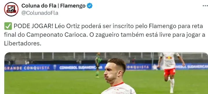 A informação é do Globo Esporte e de outras fontes da imprensa nacional. Ortiz é esperado no Rio de Janeiro em breve, onde será apresentado para a torcida do Mengão.