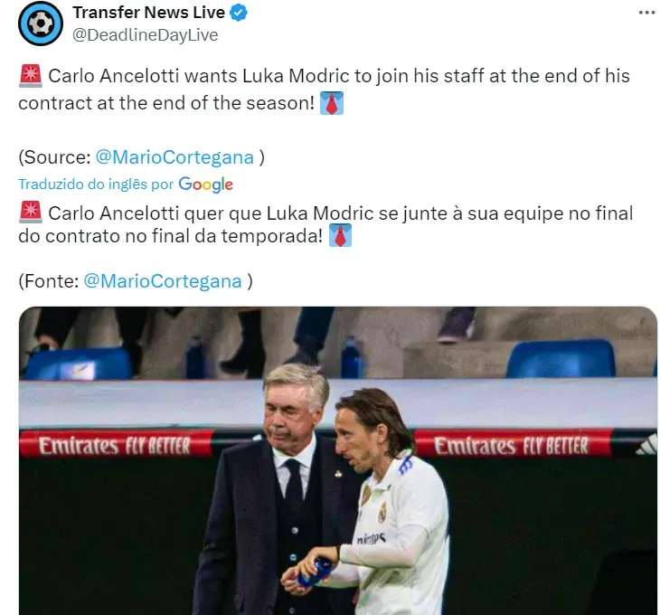 Várias fontes da Espanha dão como certo a saída de Modric do Bernabeu. O camisa 10, inclusive, perdeu sua vaga de titular com Ancelotti, o que explica tal decisão do Real Madrid.