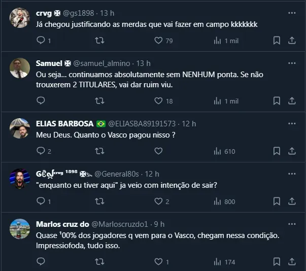 Entretanto, apesar da fala do meia exaltando o executivo do Vasco e o tamanho do Clube, o assunto não caiu bem. Alguns torcedores não gostaram da declaração sobre o ritmo de jogo e criticaram a chegada do atleta.
