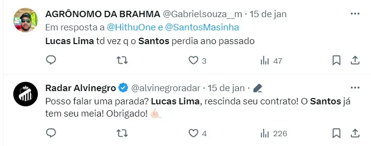 Como o UOL Esporte relatou, o Santos esperava uma outra postura de Lucas Lima quanto ao afastamento, mas o jogador não demonstrou nenhuma reação e segue treinando separado normalmente.