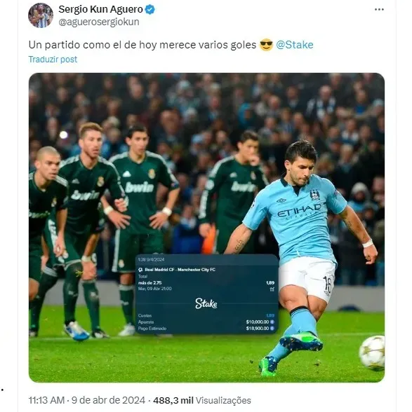 O ex-atacante Kun Aguero, lendário jogador do Manchester City, surpreendeu a todos ao ganhar uma boa quantia em dinheiro com uma aposta na partida emocionante entre seu ex-clube e o Real Madrid, pela Liga dos Campeões.