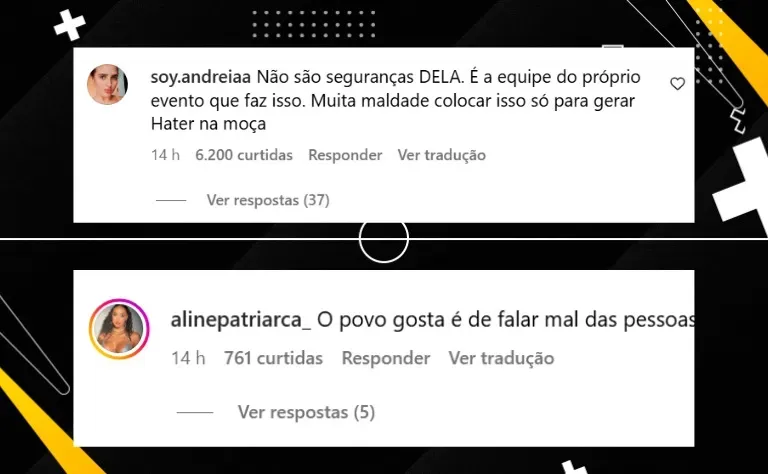 A famosa disse que as pessoas em volta dela não eram seguranças e que na verdade, eram membros da equipe de organização do festival, além de profissionais de uma empresa que ela faz publicidade.