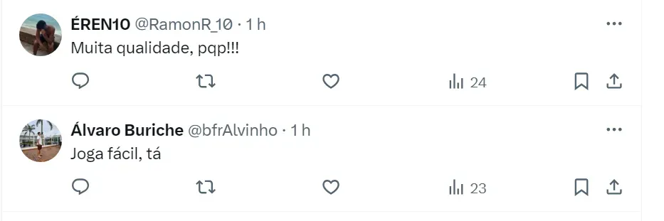 No X (antigo Twitter), os torcedores do Botafogo elogiaram a qualidade técnica do volante brasileiro e estão animados para vê-lo com a camisa do Fogão. Os botafoguenses acreditam que ele será titular quando chegar ao Clube Carioca.