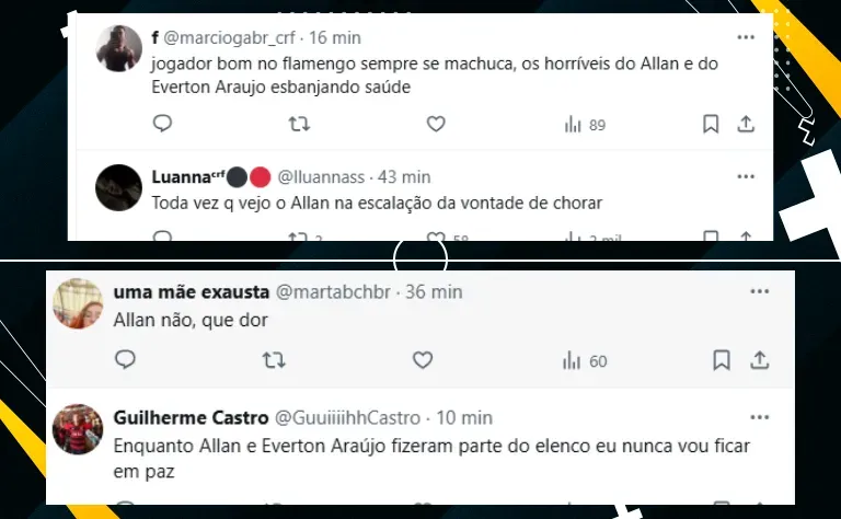 Todavia, como o Rubro-Negro ainda não pode contar com o futebol de Erick Pulgar, vários torcedores reclamaram da presença de Allan entre os titulares. O ex-jogador do Galo não é bem quisto pela Nação Rubro-Negra.