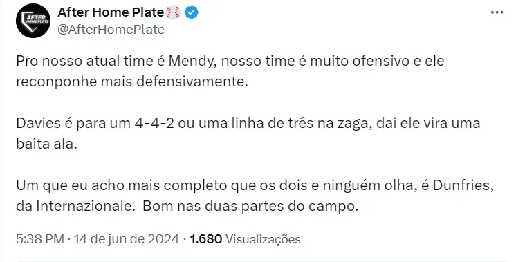 Mendy está em fim de contrato com o Real Madrid. O vínculo vai até julho de 2025. O clube merengue prefere Davies, porque se lesiona menos do que o francês. Todavia, o pensamento de Ancelotti pode prevalecer.