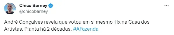 Na opinião do jornalista, é injusto chamar André de planta: “André Gonçalves está na final e é muito merecido. Planta? Eu não acho! O André teve argumentos e um jogo muito sábio”, publicou ele.