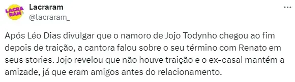 Término de Jojo Todynho e Renato Santiago