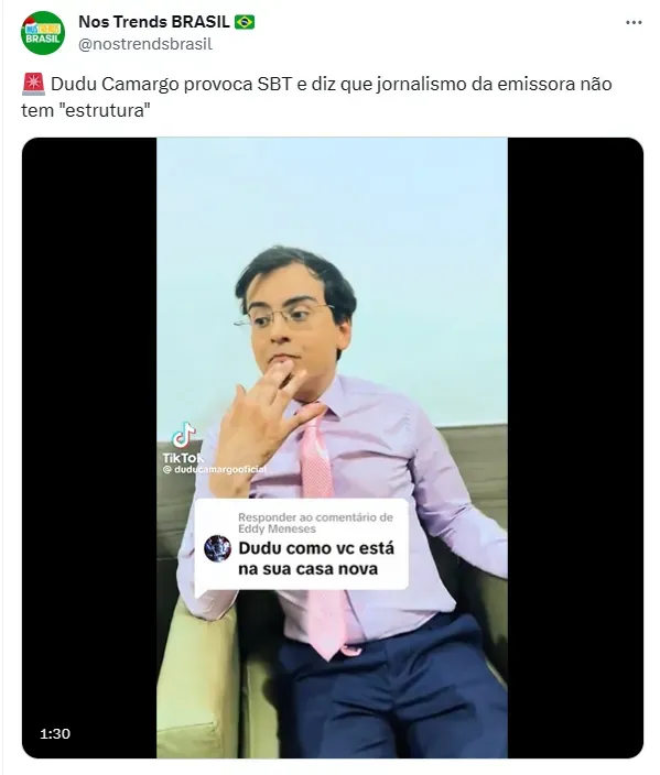 Recentemente, Dudu Camargo virou um assunto bastante comentado nas redes sociais após ser demitido do SBT. Na ocasião, vazaram algumas notícias do suposto motivo pelo qual ele teria tido seu contrato encerrado.