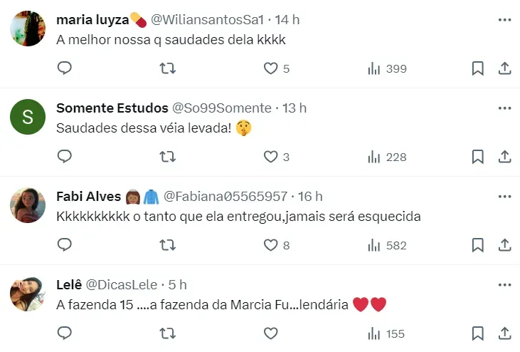 Um dos nomes mais marcantes de A Fazenda 15 foi o de Márcia Fu, muito por conta de seu carisma e ‘jogo sujo’. A ex-jogadora de vôlei terminou o reality show no terceiro lugar e segue dando o que falar.