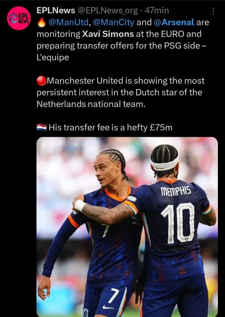 Xavi Simons tem contrato no PSG até junho de 2027 e, segundo o site Transfermarkt, está avaliado em 80 milhões de euros (R$ 466,9 milhões). Não obstante, neste momento, o meia disputa a Eurocopa com a Holanda e só deve definir seu futuro após o torneio.