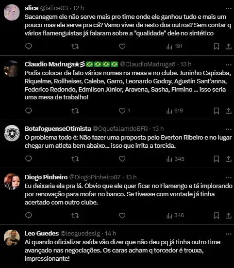 Outros nomes estão em consideração, mas a possibilidade de uma proposta ao jogador não está descartada. O jornalista Matheus Medeiros, em suas redes sociais, mencionou que o Botafogo tem outros nomes em pauta, mas a situação de Everton Ribeiro está sendo acompanhada de perto.