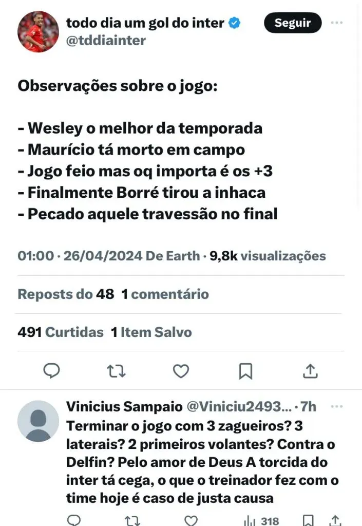 O que dizem os torcedores do Inter: