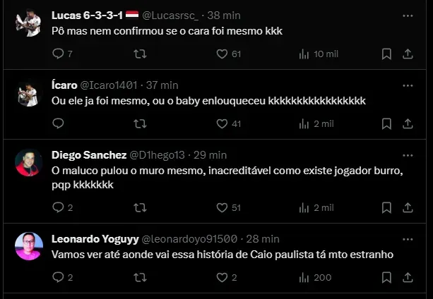 Esse foi um dos principais assuntos do São Paulo no final de semana. Até o momento, Caio Paulista não se pronunciou sobre o caso envolvendo as três equipes.