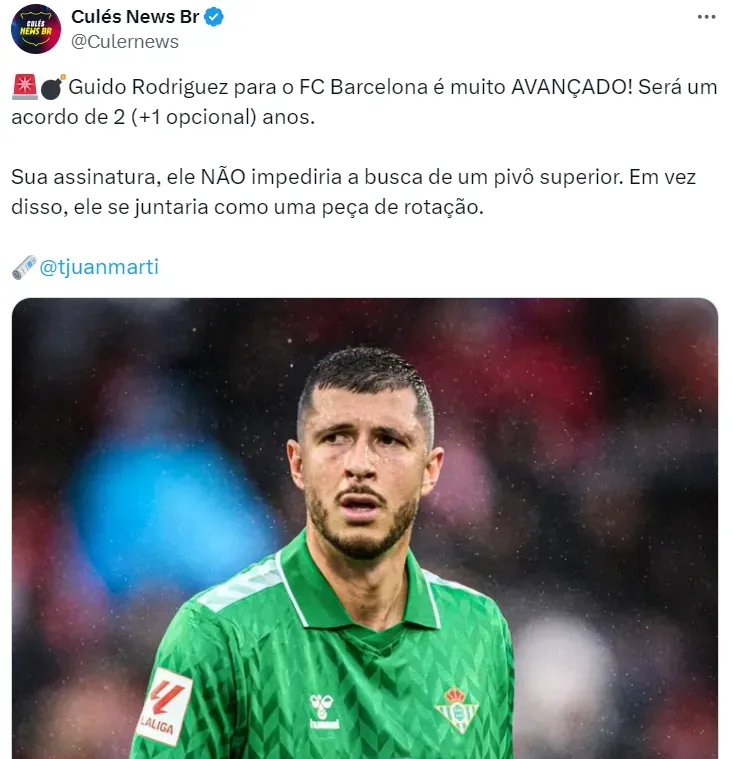 A contratação de Guido Rodríguez para o Barcelona não impedirá que clube busque, no mercado, um volante de alto nível, como deseja Xavi e, acima de tudo, a diretoria cúle.
