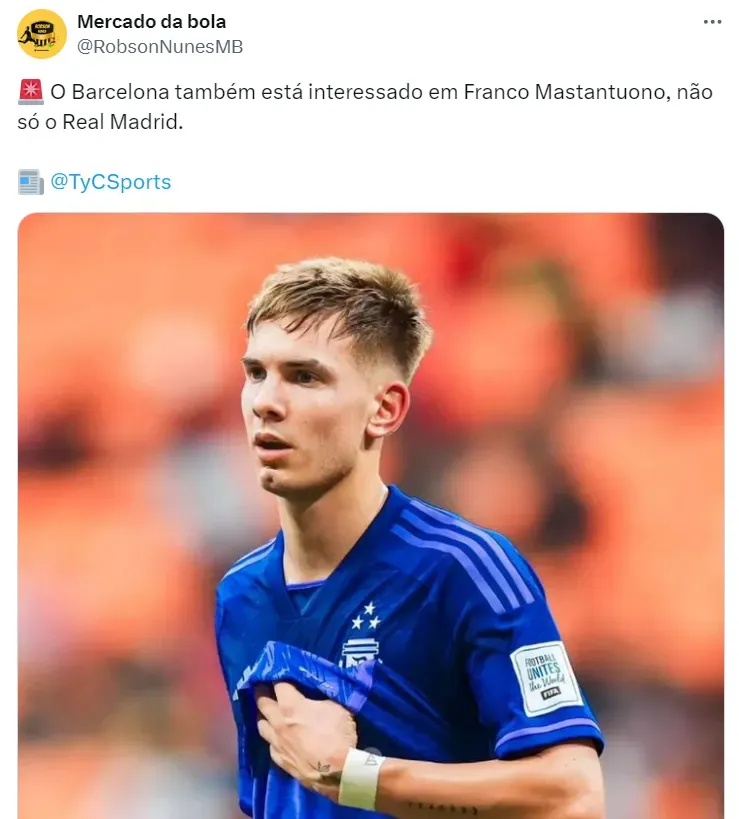 O jogador é disputa é o jovem Franco Mastantuono, de apenas 16 anos de idade, do River Plate, considerado uma das maiores promessas do futuro do futebol argentino.
