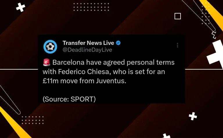 Isso porque, hoje (23), o jornal Sport, da Espanha, revelou que o Barcelona acertou os termos com o atacante italiano Federico Chiesa, da Juventus.