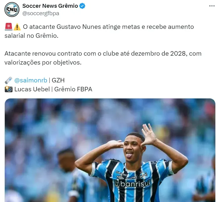A multa de Gustavo Nunes é avaliada em 80 milhões de euros (R$ 436 milhões). O Grêmio dificilmente vai conseguir vendê-lo por esse valor, mas espera por um grande montante.