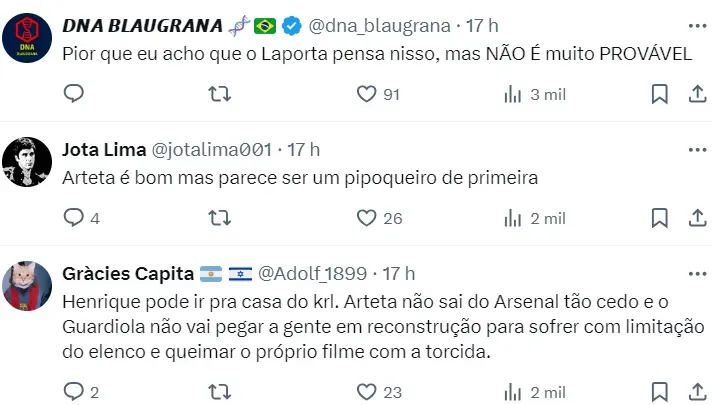 Todos esses três treinadores entram na mira do Barcelona para a temporada 2025. Dos nomes, é claro, o que mais agrada, é Pep Guardiola, e o que está mais distante, é Arteta.