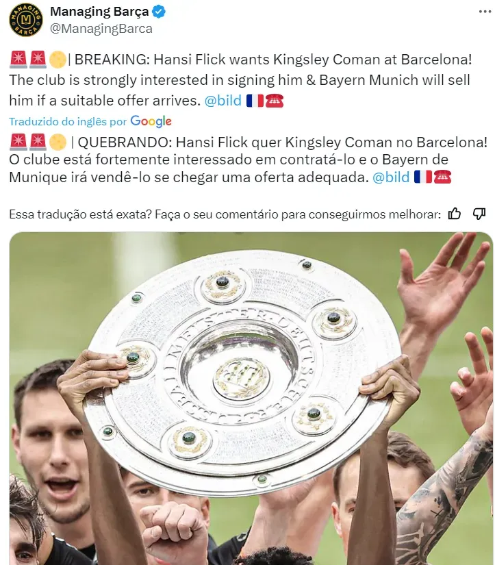 Solicitações de contratações já acontecem ao Barcelona. Hansi Flick entende que o elenco é bom, mas precisa de mais peças. Coman, do Bayern, foi solicitado, agrada e o clube alemão topa negócio.