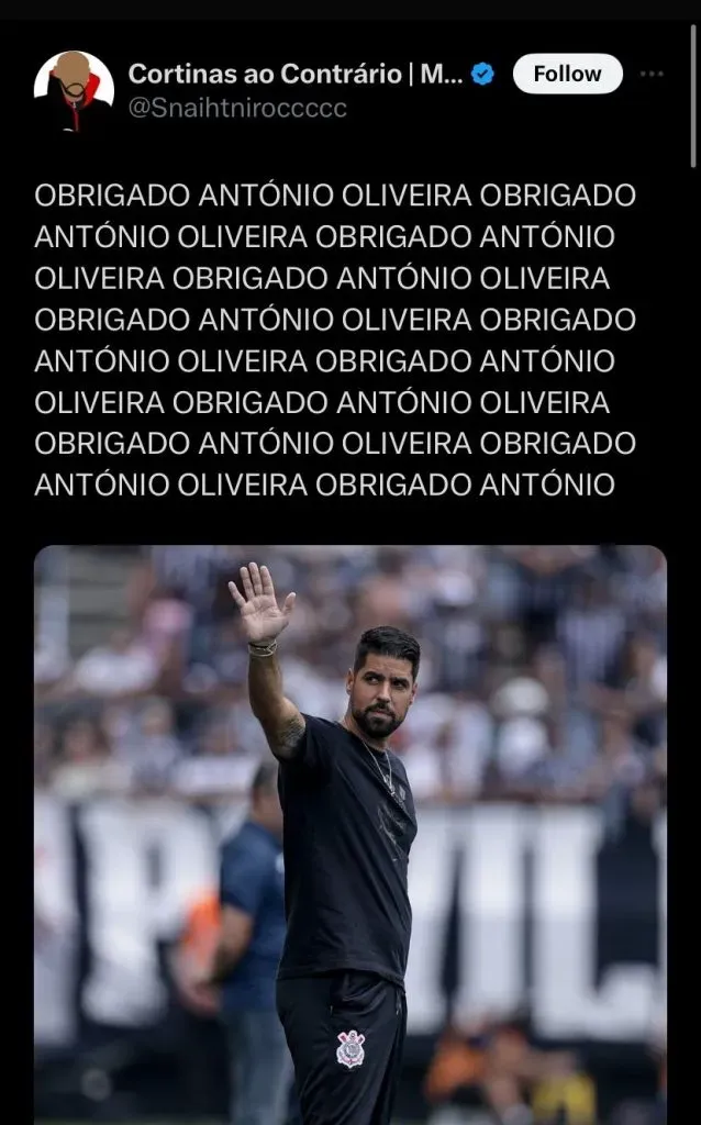 Desde que chegou, António vem sendo muito elogiado por todos. No último domingo (25), em entrevista à TNT Sports, o presidente do Corinthians, Augusto Melo falou sobre o treinador:
