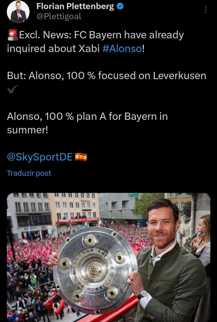 Trata-se do espanhol Xabi Alonso, que, segundo apuração do jornalista Florian Plettenberg, é o plano A do Bayern para o verão europeu.