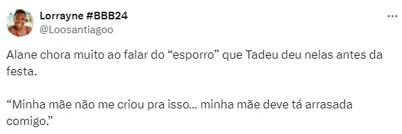 As sisters tentaram consolar a aliada, porém ela relembra novamente o momento em que o apresentador chamou sua atenção. “Ela pode até dizer, quando eu sair, que não foi nada, mas eu tenho certeza de que ela deve estar no auge da decepção”, afirma.