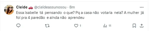 “[…] O pessoal não acha que você tá jogando sozinha, não. Você joga só, unilateral, mas o pessoal acha que você tá com a gente. Aí você escolhe… Se joga o jogo unilateral, como você sempre fez. Ou, assume o pepino”, justifica o baiano.