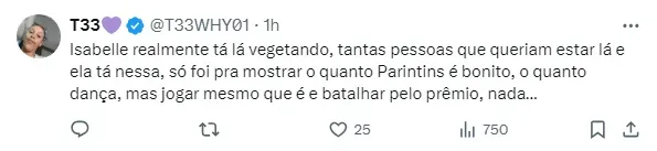 “[…] O pessoal não acha que você tá jogando sozinha, não. Você joga só, unilateral, mas o pessoal acha que você tá com a gente. Aí você escolhe… Se joga o jogo unilateral, como você sempre fez. Ou, assume o pepino”, justifica o baiano.