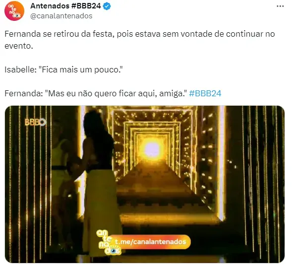 Mesmo com a insistência, Fernanda, que demonstrou estar desconfinada do MC Bin Laden, não pareceu animada e optou por deixar o local, indo em direção ao Quarto do Líder: “Mas eu não quero ficar aqui. Eu não quero ficar aqui, amiga”.