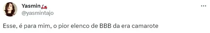 “Três homens com ego ferido porque a Yasmin jamais daria bola para eles. O agressor é o pior vovô. Vamos eliminar. Não tem nem liberdade para um banho improvisado, tarados”, continuou Luiza.
