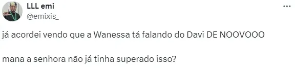 Ao falar sobre a situação, a cantora Wanessa Camargo voltou a tecer críticas contra Davi, após sua relação com o brother se amenizar: “Tem coisas que me incomodam muito nele”, inicia.