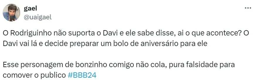 Com a reação negativa do brother, a ideia esfriou e não foi mais debatido esse assunto entre os participantes, mas Davi resolveu tomar à frente e fazer o bolo.