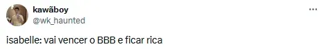 Já Isabelle foi a que menos teve conquistas em prêmio até o momento entre os três finalistas do programa. Ela tem de forma garantida, R$ 59,5 mil em dinheiro, um notebook, uma smart TV e uma viagem nacional com um acompanhante.
