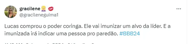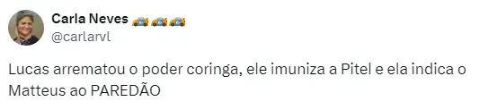 Ainda de acordo com a dinâmica da semana, o imunizado pelo dono do Poder Curinga também indicará alguém para o paredão.
