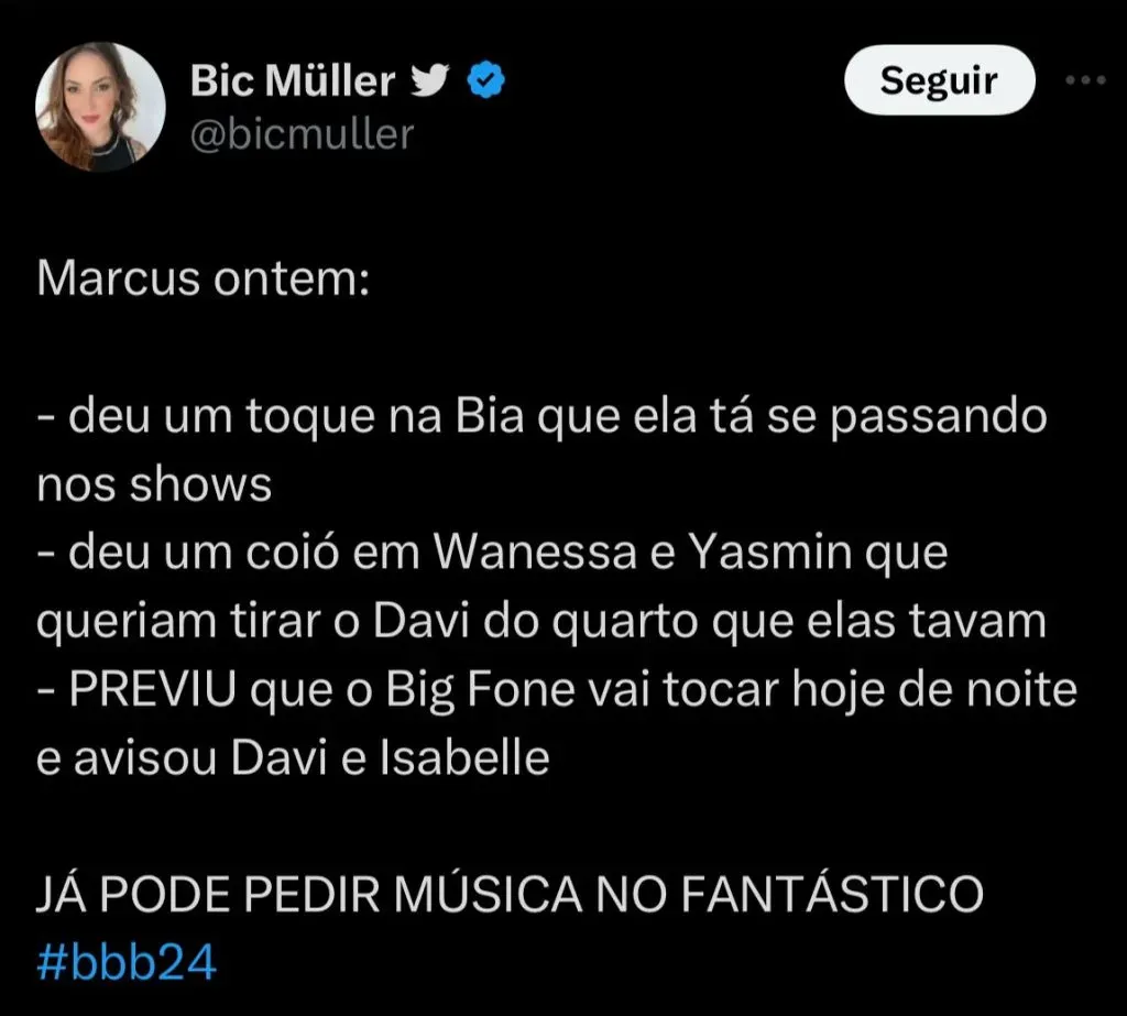 O primeiro Big Fone do BBB 24 tocou! Marcus foi o mais rápido e conseguiu atender o chamado. A voz do telefone deu a seguinte ordem: “Atenção, preste muita atenção. Você está imune. Indique agora 3 pessoas ao Paredão”.