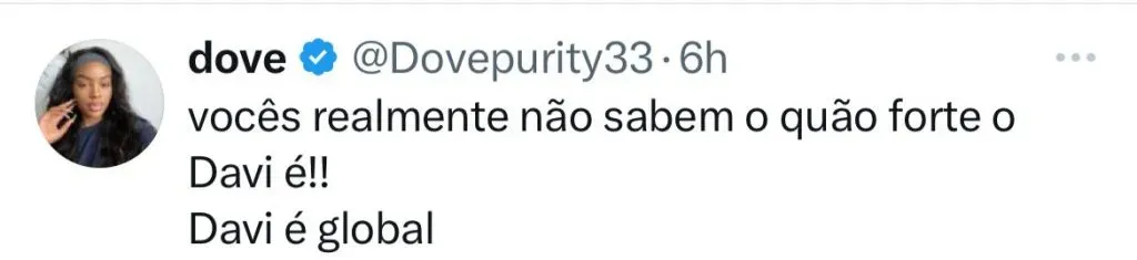 Após a fala do MC, a equipe do esposo de Mani Reggo respondeu: “Autoconfiança é valida dentro do jogo! Mas porque quando é o Davi é visto como soberbo?”, declarou.