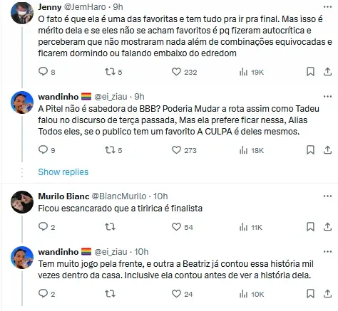 Vale lembrar que Giovanna Pitel e Beatriz não tem uma relação muito próxima no reality show, e inclusive a vendedora – que é a atual Líder no programa – possui Pitel como um dos alvos para indicação no Paredão.