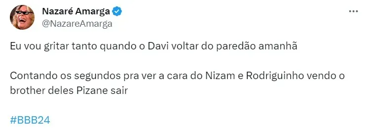 Sobrou até para Tadeu, que virou alvo de críticas após o discurso: “Tadeu com preguiça de fazer discurso para 26 participantes… já a eliminada ficou com preguiça de abraçar todo mundo”, opinou um.