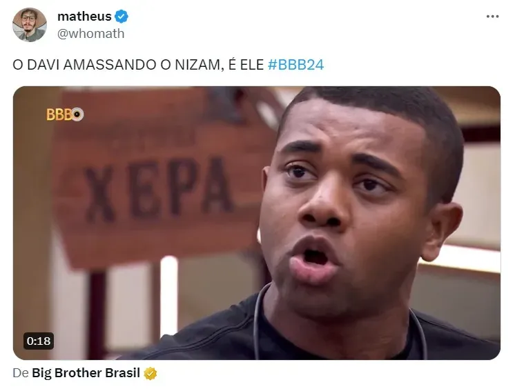 “Seu equilíbrio emocional é zero, Davi. Fala direito, mano! Olha como você tá falando… Olha isso, o show que você tá dando”, rebateu o brother. “Falo alto como eu quiser”, continuou Davi.