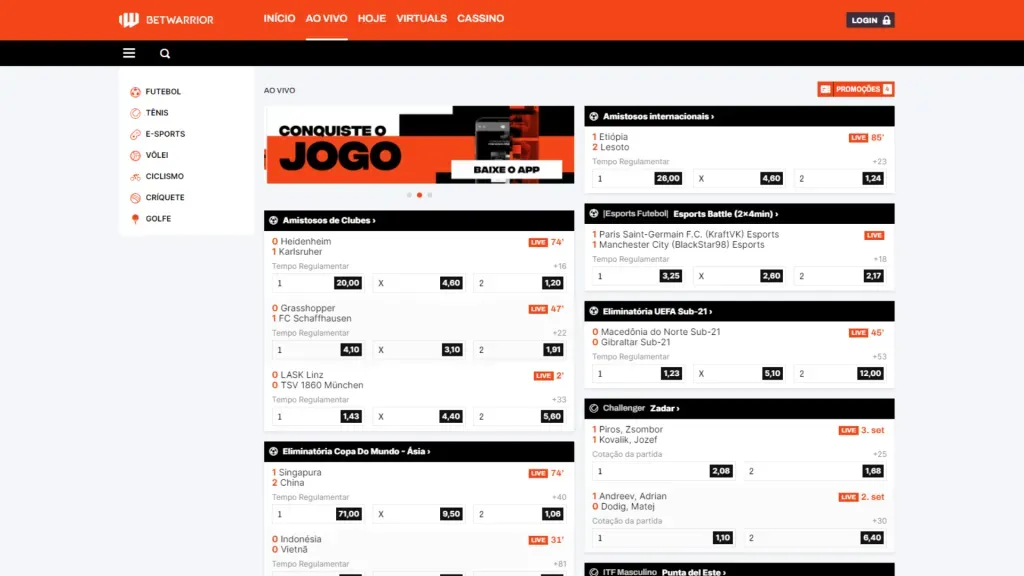 Outra ferramenta muito buscada é o streaming, isto é, a transmissão ao vivo dos jogos, que está disponível na BetWarrior. Desta forma, os clientes podem assistir a determinados eventos esportivos enquanto fazem as apostas, na mesma plataforma.