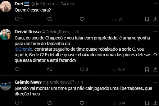 Desta vez, o último destino acabou sendo a Chapecoense. Agora, fora dos planos ainda, pode ser novamente envolvido em uma transação. O zagueiro gosta do que foi apresentado pelo Grêmio. Precisa agora o ajuste entre clubes.