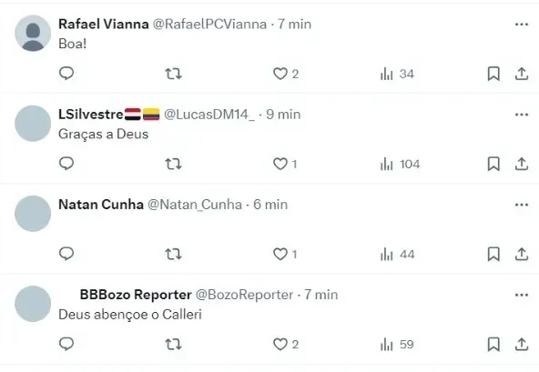 “Calleri: fez todos os exames hoje. Nada grave. Evolução será dia a dia. Mesmo assim é tratado como dúvida pra domingo”, escreveu o jornalista em sua conta oficial no X (antigo Twitter), na noite desta segunda-feira (11).