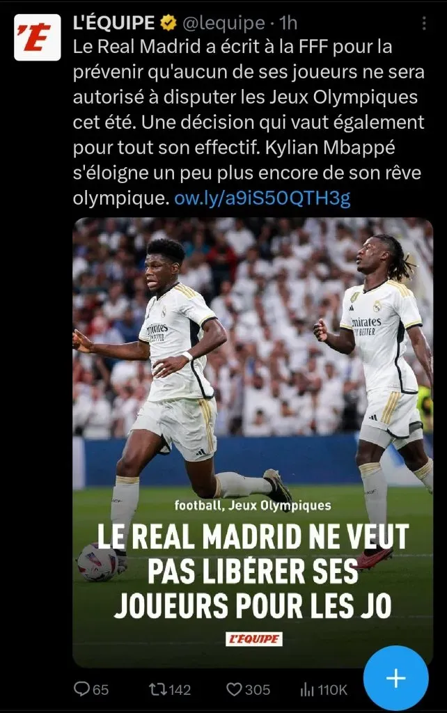 Camavinga e Tchouaméni estão sabendo que ficarão de fora dos Jogos Olímpicos de Paris 2024. A dupla de franceses está vetada pelo Real Madrid de jogar pela França nas Olimpíadas.
